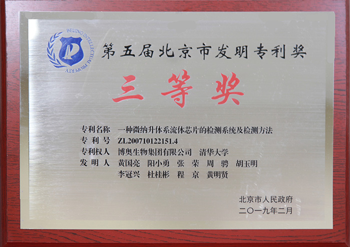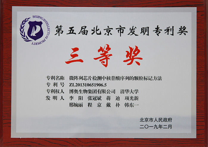 歷年來,博奧共榮獲中國專利優(yōu)秀獎10次,北京市發(fā)明專利二等獎1次,北京市發(fā)明專利三等獎4次。博奧先后被評為國家知識產(chǎn)權示范企業(yè)、北京市知識產(chǎn)權示范單位(現(xiàn)已更名為”北京市知識產(chǎn)權優(yōu)勢單位“)、北京市知識產(chǎn)權運營試點單位、工業(yè)與信息化部工業(yè)企業(yè)知識產(chǎn)權運用試點企業(yè)等知識產(chǎn)權榮譽資質。