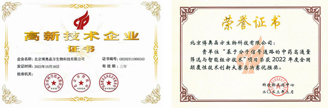 目前已獲得國家高新技術(shù)企業(yè)、創(chuàng)新型中小企業(yè)、科技型中小企業(yè)、雙軟認(rèn)證企業(yè)、AAA級(jí)信用企業(yè)、博士后工作站等資質(zhì)。并獲得科技部2022年全國顛覆性技術(shù)創(chuàng)新大賽總決賽最高獎(jiǎng),入選中華中醫(yī)藥學(xué)會(huì)2022年度“中醫(yī)藥十大學(xué)術(shù)進(jìn)展”。具有發(fā)明專利21項(xiàng),軟件著作權(quán)21項(xiàng)。