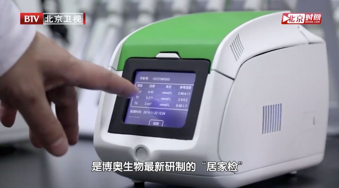 微流控全自動生化分析儀是博奧生物自主研發(fā)的“明星產(chǎn)品”。它將生物芯片平臺技術和生化檢測技術相結(jié)合,只需一滴(12微升)指尖血,15分鐘就可以對樣本中的血糖、甘油三酯、總膽固醇準確快速的檢測并出具檢測報告,可通過無線傳輸技術將數(shù)據(jù)同步到智能手機終端或云端服務器,并用健康管理APP對歷史數(shù)據(jù)進行追蹤查詢、數(shù)據(jù)云端存儲與分析管理,幫助使用者實時、準確地掌握血脂、血糖等身體指標,為醫(yī)生診斷提供準確、動態(tài)的個人健康大數(shù)據(jù)。
